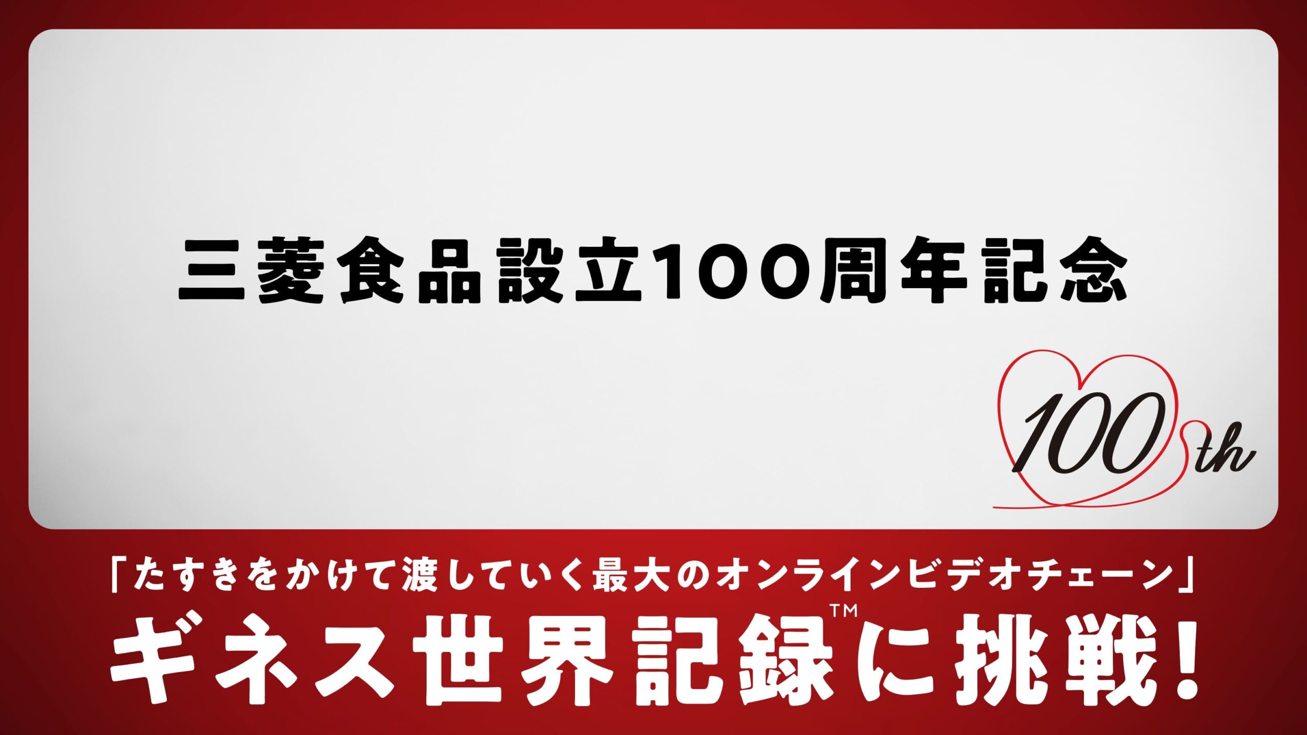100周年プロジェクトの一環として、「たすきをかけて渡していく最大のオンラインビデオチェーン/Largest online video chain of people wearing and passing a tasuki (marathon sash)」に三菱食品グループ社員713名が挑戦し、ギネス世界記録™に認定されました。