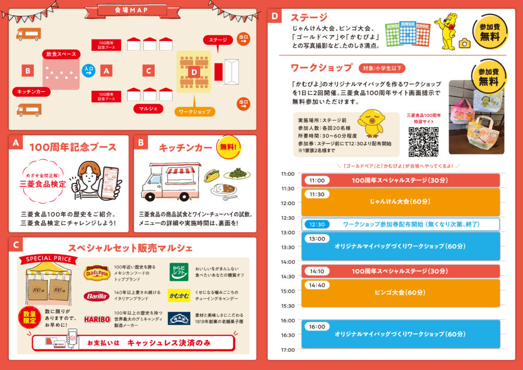 会場内には物販マルシェ、キッチンカーや、パネル展示、ステージイベントなどに加え、「HARIBO」「かむかむ」のフォトスポットなどなど、たくさんのコンテンツをご用意しました。